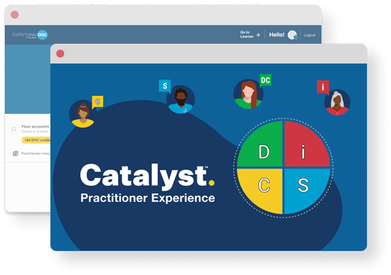 Transform your people's performance with engaging DiSC® training that works. The Catalyst™ Practitioner Experience is an easy-to-use solution that seamlessly fits into your workflow. It gives you the flexibility and confidence to run impactful sessions that drive lasting team success.