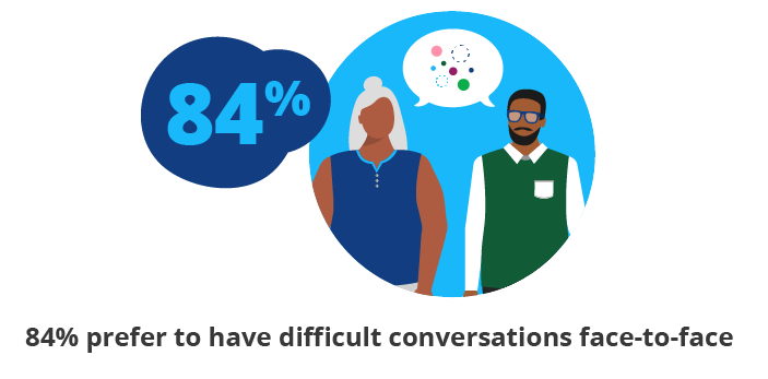 Our research found that even the trickier elements of our work lives, like conflict management, are not being replaced by AI. How easy would it be to have a chatbot draft a quick email about a sticky situation at work? Quite easy. And yet, 84% of people shared that they are navigating these challenging workplace scenarios face-to-face which prioritizes people and effects true change that can ultimately have a positive impact on workplace culture.